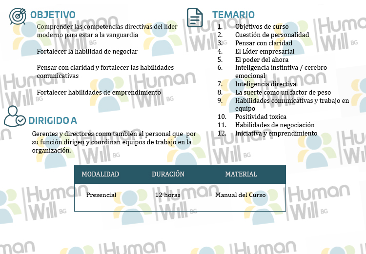 Este curso está diseñado para proporcionar los puntos clave para la gestión y el liderazgo moderno de directores y emprendedores